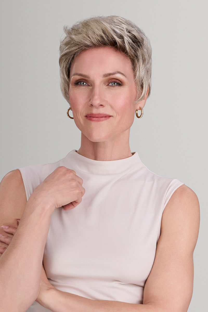 Vivian es una peluca sintética corta y elegante, con una textura sutil que permite un volumen adaptable o un acabado más liso. Confeccionada con fibra sintética de alta calidad, cuenta con el tul frontal SmartLace extendido para un efecto de línea capilar ultra realista, y una base cerrada que garantiza una forma estructurada y una cobertura total. Vivian ofrece un ajuste personalizado que garantiza que las clientas se sientan seguras y radiantes. Este modelo es de venta exclusiva en salones.